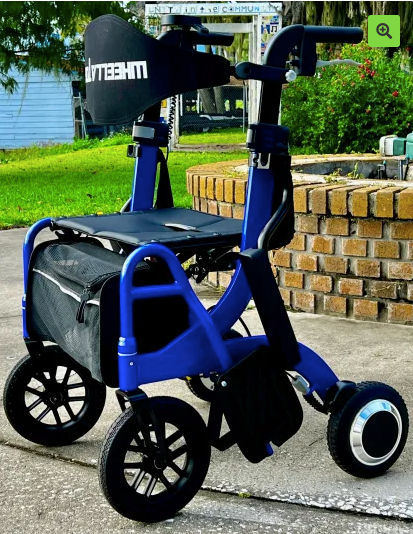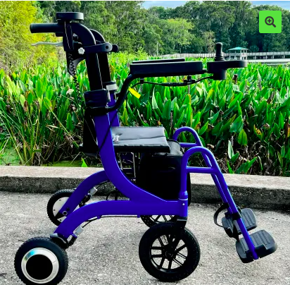 The Wheelator is a motorized walking aid designed with a seat that quickly converts into a motorized wheelchair, offering versatile support for your mobility needs.